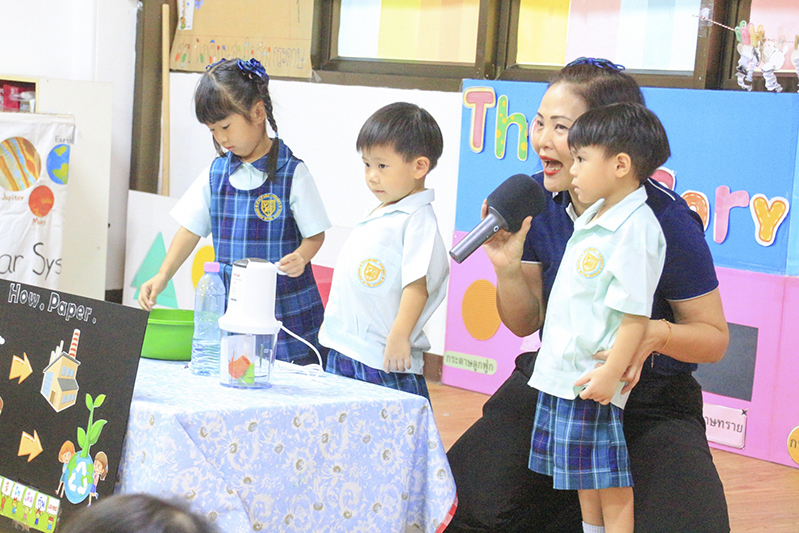 ผ่าน Project Approach ซึ่งผสานการจัดการเรียนการสอนแบบ MI Modules เพื่อพัฒนาศักยภาพหลากหลายด้านของผู้เรียน หัวข้อที่นักเรียนเลือกมีทั้งผีเสื้อ กล้วย ไอศกรีม กระดาษ ข้าวโพด และสีจากธรรมชาติ ผู้ปกครองยังได้ชมกิจกรรมการเรียนการสอนภาษาอังกฤษ การเคลื่อนไหวร่างกาย ศิลปะ นิทาน และดนตรี ได้เห็นพัฒนาการและความมั่นใจของเด็ก ๆ อย่างต่อเนื่อง