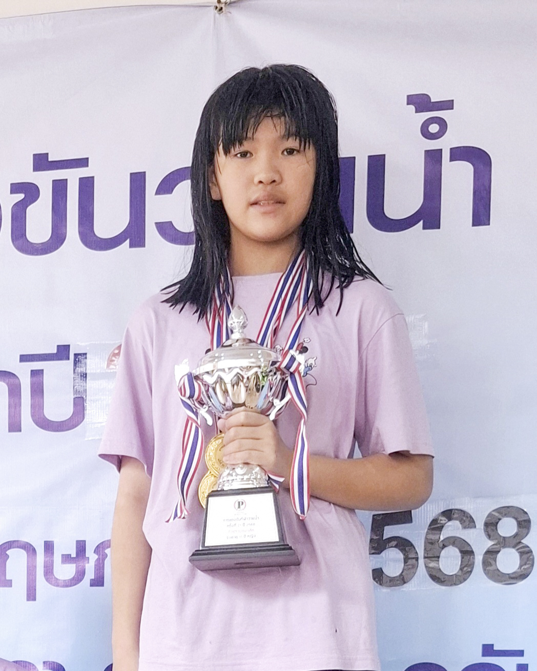 จากการแข่งขันว่ายน้ำ ครั้งที่ 21 ประจำปี 2568 รุ่นอายุ 11 ปี หญิง ณ สโมสร ภัทราสปอร์ตคลับ เมื่อวันที่ 3 พฤษภาคม 2568