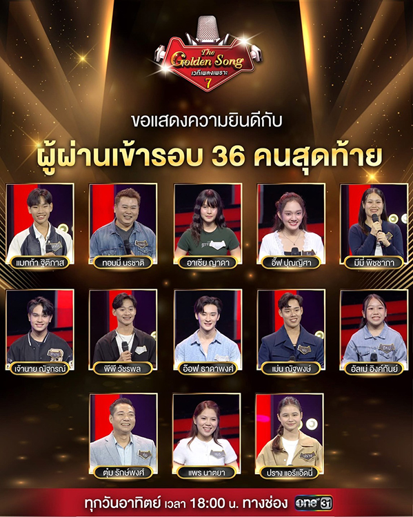 จากการแข่งขันรายการแข่งขันร้องเพลง The Golden Song เวทีเพลงเพราะ Season 7 จากผู้เข้าแข่งขันหลักหลายพันคน และจะทำการแข่งขันสัปดาห์หน้าเป็นต้นไป ในโจทย์เพลงครูเพลงลูกกรุง