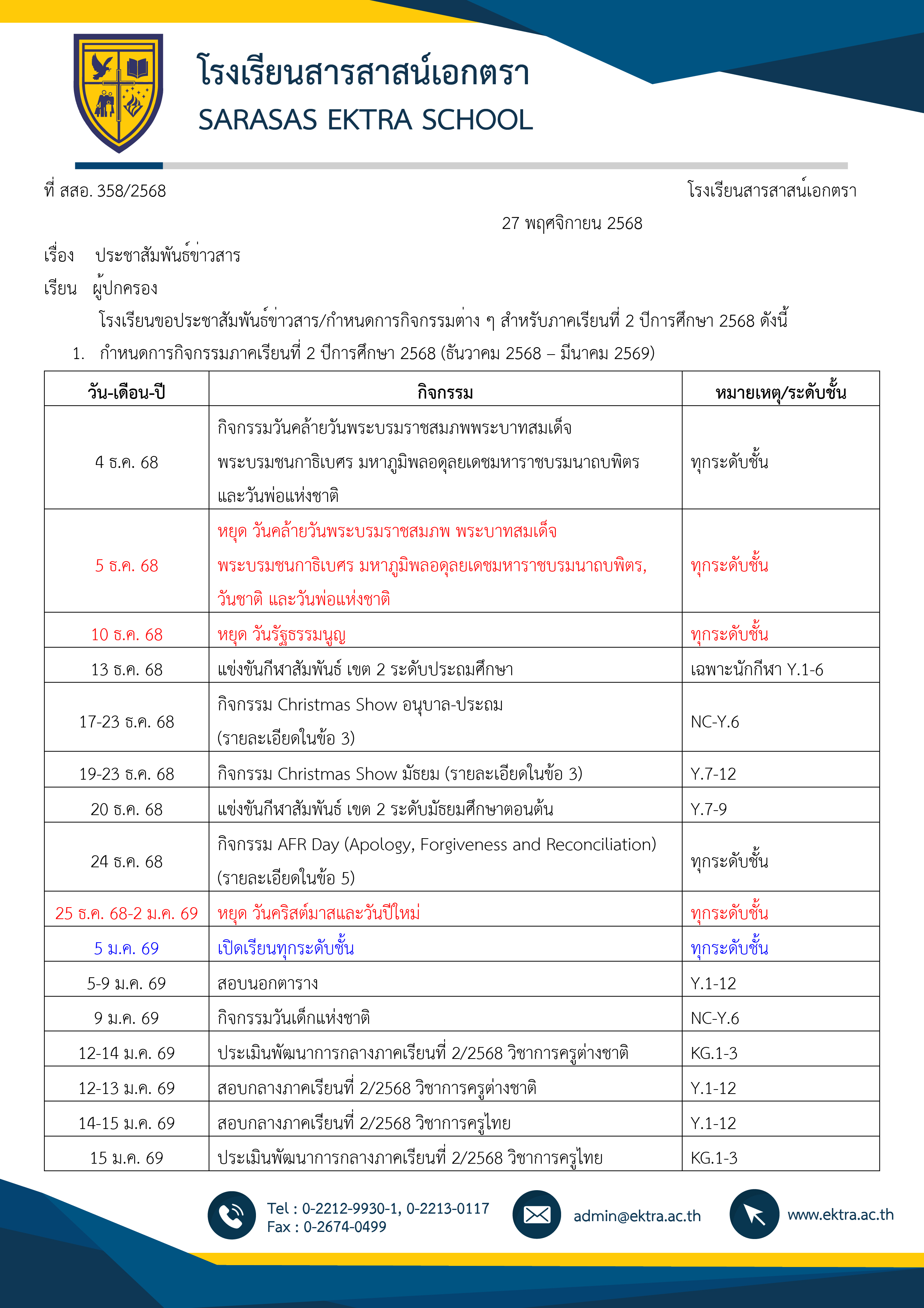 ⏰ Special discount for KG.3, Y.6 and Y.9 students who pay full tuition in advance for semester 2/2025 & 1/2026 by Sri Sarasas Day.