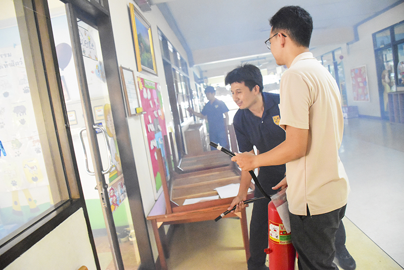 ผู้เข้าร่วมได้ทดลองใช้อุปกรณ์ดับเพลิง