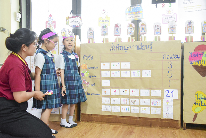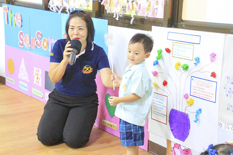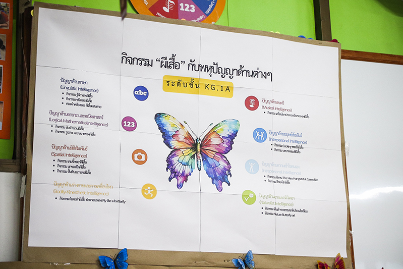 ผ่าน Project Approach ซึ่งผสานการจัดการเรียนการสอนแบบ MI Modules เพื่อพัฒนาศักยภาพหลากหลายด้านของผู้เรียน หัวข้อที่นักเรียนเลือกมีทั้งผีเสื้อ กล้วย ไอศกรีม กระดาษ ข้าวโพด และสีจากธรรมชาติ ผู้ปกครองยังได้ชมกิจกรรมการเรียนการสอนภาษาอังกฤษ การเคลื่อนไหวร่างกาย ศิลปะ นิทาน และดนตรี ได้เห็นพัฒนาการและความมั่นใจของเด็ก ๆ อย่างต่อเนื่อง