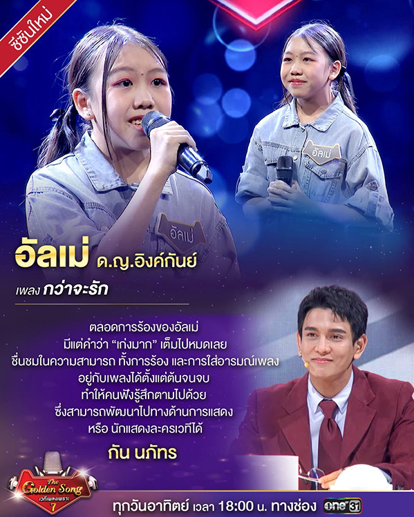 จากการแข่งขันรายการแข่งขันร้องเพลง The Golden Song เวทีเพลงเพราะ Season 7 จากผู้เข้าแข่งขันหลักหลายพันคน และจะทำการแข่งขันสัปดาห์หน้าเป็นต้นไป ในโจทย์เพลงครูเพลงลูกกรุง